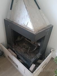 Vendo inserto caminetto angolare aperto Multifuoco in acciaio cavo, ideale per chi cerca un sistema di riscaldamento robusto, elegante e pronto all'uso.