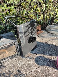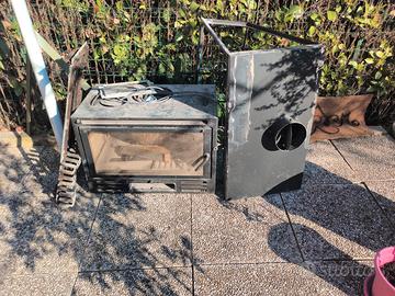 Inserto camino con lato sinistro (da vista frontale) vetrato. Usato ma in buone condizioni. Completo di pannello di rivestimento. Solo ritiro.