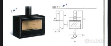 ART. HABIT 80 in Expo 4Stelle con KIT VENTILAZIONE MISURE L. 78 * p. 41 * H. 54,5 Kw 9/ 11,5 - Kg. 187 Diam. Fumi cm. 180 CON SUPPORTO INSERTO / PORTALEGNA ROCAL