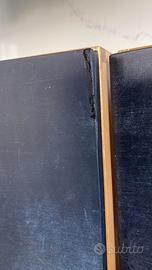 Insieme di 3 pensili di legno, l’interno di ciascuno è suddiviso in 4 compartimenti e l’esterno degli sportelli è utilizzabile come lavagna, per scrivere sopra con il gesso. I pensili vengono fissati alla parete con due viti. Possono essere utilizzati sia in cucina (per sistemare ad esempio i contenitori di spezie e appuntare sulla porta quello che manca per la spesa), sia come armadio per la camera dei bambini, come ripostiglio per matite, penne, gessi ecc. e lavagna per disegnare e scrivere. Uno sportello è leggermente danneggiato come si vede nell'ultima foto. Dimensioni: Altezza: 30cm Larghezza :30 cm Profondità: 16cm. Non spedisco. Ritirabile a Cividale del Friuli, zona Rualis.