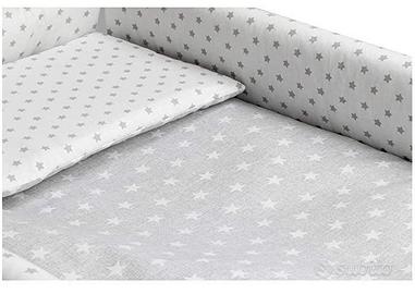 La culla comprende tessuti della collezione star grigio. sono realizzati al 100% in cotone.