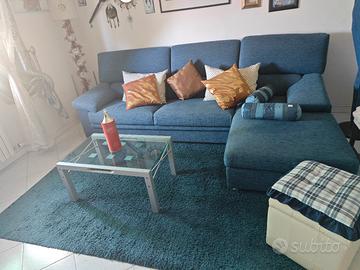 salotto come nuovo usato pochissimo, divano colore blù completamente sfoderabile, con penisola, tavolino in vetro, grande tappeto blù, mobile per TV, mobile con ante in vetro. accessori tutto quello che vedete nelle foto. se volete sono anche disposto nel darvi l'impianto stereo ad un ottimo prezzo professionale con TV Sony e casse Bose. affrettatevi non perdite di tempo sono in fase di traslogo sono disponibile ne farvelo vedere. non spedisco consegna a mano contattami.