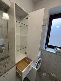 Vendo intero mobile da bagno usato di colore bianco dotato di lavabo e grande specchiera con illuminazione funzionante.
