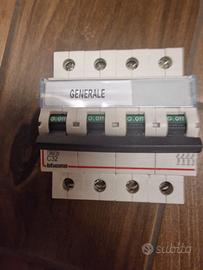Interruttore magnetotermico a 4 moduli dotato di 4 poli per amperaggi fino a 32 A, caratterizzato da curva di intervento di tipo C e potere di interruzione Icn di 4,5 kA, da installare subito a valle del contatore, per proteggere l’impianto elettrico