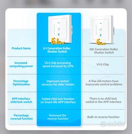 Interruttore per tapparelle Wi-Fi SMARTERCURRY [6.1 Gen], interruttore intelligente per tapparelle a LED con timer, blocco bambini, controllo tapparelle compatibile con Echo Alexa/Google, confezione da 4 | Bianco