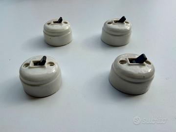 Lotto 4 bellissimi interruttori in porcellana vintage con leva in bachelite, uno dei quattro è un deviatore/ invertitore. Usati ma in condizioni perfette come da foto.