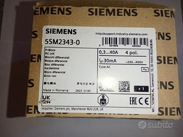 Vendo anche separatamente Magnetotermico 4 poli SIEMENS mod. 5TL14630 63A 440V~ nuovo imballato € 40 Blocco differenziale SIEMENS mod. 5SM2343-0 I∆n 30mA 400V~ nuovo imballato €70. Sconto per diversi pezzi acquistati.