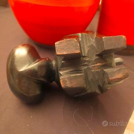 Questa affascinante scultura di Ipoopotamo è scolpita nel pregiato palissandro da artigiani africani. Questo pezzo squisitamente intagliato è uno dei preferiti dagli arredatori d'interni e dai designer di Feng Shui. È un meraviglioso accessorio d'arredo e può anche essere un ottimo regalo di nozze o aziendale. Il legno di ebano è molto comune nei paesi dell'Africa occidentale ed è eccellente per intagli/sculture grazie alla sua densità, alla colorazione (nero, marrone scuro, misto nero/crema o marrone/crema) e alla brillante lucentezza naturale