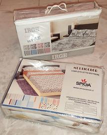 Completi letto 1 posto marca IRGE e SPIGA, misure, fantasia e specifiche visibili in foto.