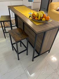Isola cucina stile industriale + due sgabelli stesso stile, dimensioni (L170, H89, P60)