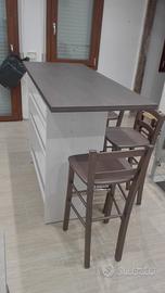 Vendo isola cucina in legno massiccio colore bianco con venature a risalto, completa di mensole porta spezie, barattoli e bottiglie.