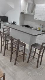 Inclusi n. 4 sgabelli in legno tinta cedro scuro, con poggiapiedi in acciaio inox.