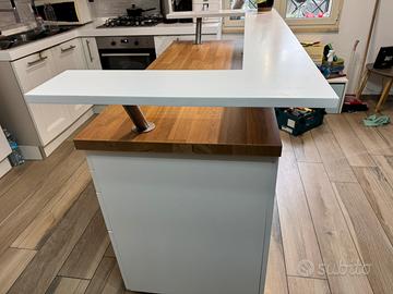 Isola cucina con mensola rialzata in corian