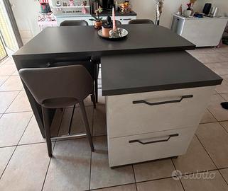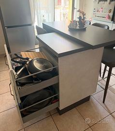 Vendo isola con due cassettoni capienti e con quattro sgabelli come da foto per rinnovo arredamento. Condizioni nuove nessun segno di usura. Per informazioni e altro potete contattarmi. Trasporto e smontaggio a carico dell’acquirente. Prezzo 250 euro.