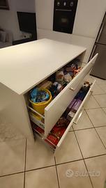 Vengo causa trasloco isola cucina in ottime condizioni. Piano resistentissimo color bianco. Misure 80x124 altezza 90 cm. 2 cassettoni scorrevoli, molto capienti
