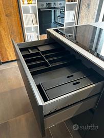 FINITURA FENIX NERO INGO, TOP E FIANCHI GRES INALCO SP.1,2, P.COTTURA INDUZIONE SIEMENS, LAVELLO VASCA UNICA 75 FOSTER FIN. GUN METAL, CESTONI ACCESSORIATI, MISURE 300X95