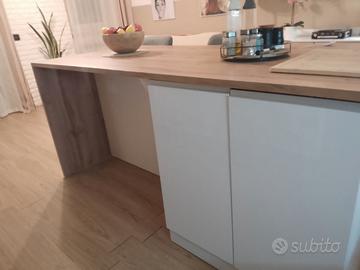 Rovere e bianco lucido a 4 ante più due sgabelli grigi struttura ferro