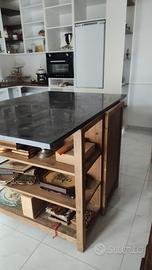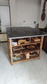 Bellissima isola per cucina in legno e top in pietra scura. Arredamento country chic, industriale. In ottimo stato. Per info contattami