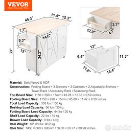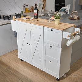 Isola per Cucina Mobile con Ruote Tavolo Ribalto con Cassetti Portaoggetti Rastrelliera Capacità Carico totale 136 kg Carrello Isola da Cucina Qualità & Durata: l'anta a ribalta dell'isola da cucina utilizza il legno di gomma massiccio di alta qualità e ha una struttura in MDF resistente. I materiali di questa isola per cucina mobile sono anti-sporco e impermeabili.