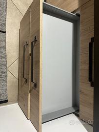 Isola in ottime condizioni - Mondoconvenienza. Maniglia in ghisa - base 90x60 2 cassetti + cesto. Porta posate in plastica L90 - top penisola color ghisa P80 H4 200 cm - zoccolo color ghisa - disponibili eventualmente due sgabelli - colore ante e mobile isola quercia chiaro per ulteriori info e foto solo su whatsapp 3382184096