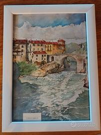 Ivrea. Canavese. ponte vecchio. Acquerello