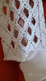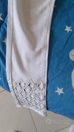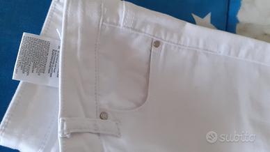 Vendo jeans donna, tg m, bianchi, traforati in fondo con brillantini , in ottimo stato conservativo 98% cotone e 2 elastane Misure girovita 66 Lunghezza dalla vita 90 Lunghezza dal cavallo 64 Vedere foto allegate