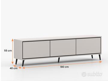 Trasforma il tuo spazio living in un ambiente di raffinata eleganza con la collezione Johannesburg. Questo set di mobili eleganti in stile moderno unisce la funzionalità di contenimento alla possibilità di esporre oggetti dal punto di vista estetico rappresentano la perfetta combinazione di funzionalità e design minimalista. Decorato in una delicata tonalità cashmere, si adatta perfettamente a diversi contesti, e la sua forma minimalista è enfatizzata da inserti neri e sottili gambe in metallo dal design minimalista, che privilegia la semplicità e la modernità. Il sistema push-to-open consente di aprire comodamente i frontali senza maniglie. Misure: Mobile porta TV a 3 ante , gambe in metallo nero e sistema PUSH TO OPEN: lunghezza 180 cm – altezza 55 cm – profondità 40 cm Vetrina Bar 2 ante dotata di 1 ripiano aperto , 5 ripiani chiusi , gambe in metallo nero e sistema PUSH TO OPEN: lunghezza 100 cm – altezza 135 cm – profondità 40 cm Vetrina alta 1 anta in vetro dotata di 5 ripiani , gambe in metallo nero e sistema PUSH TO OPEN: lunghezza 50 cm – altezza 185 cm – profondità 40 cm Cassettiera dotata di 2 ante con ripiani , 3 cassetti , gambe in metallo nero e sistema PUSH TO OPEN: lunghezza 150 cm – altezza 100 cm – profondità 40 cm Tavolino da caffè dotato di 2 vani portaoggetti , gambe in metallo nero e sistema PUSH TO OPEN: lunghezza 90 cm – altezza 45 cm – profondità 65 cm Materiali robusti e di qualità: pannello laminato spesso 16 mm Maniglie in PVC bordi rifiniti completamente con impiallacciatura in PVC Pulizia: utilizzare acqua tiepida e detergenti neutri, usando panni delicati antigraffio. Asciugare tutto subito appena si è finito di pulire. Desideri ulteriori informazioni? Contattaci al numero (anche WhatsApp), siamo a tua disposizione!