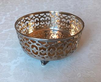 Cestino circolare traforato in argento altezza 6,5cm diametro 11cm peso 175 gr