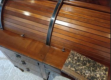 MISURA CM 153X116,5 H X60 P QUESTO IMPAREGGIABILE SCRITTOIO, ICONA DELLE COLLEZIONI LE PROCINCIALES ROCHE BOBOIS DEGLI ANNI 90,AL PUNTO DI FARNE L'IMMAGINE COPERTINA DEI CATALOGHI DI QUEGLI ANNI