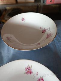 KAHLA servizio porcellana tedesca da 6 (5 dolce) piu’ piatto portata, ciotola grande Filo oro vintage, con decorazioni floreali rosa. Ottime condizioni, mai utilizzati e ben conservati. SOLO RITIRO A CHIERI (TO), TORINO euro 110