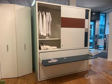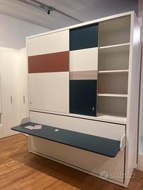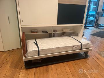 MODELLO KALI PONTE BOARD COMPRENSIVO DI ARMADIO CON ANTE SCORREVOLI , LETTO SINGOLO A SCOMPARSA CON MATERASSO , TESTATA INTERNA IN TESSUTO , LUCE LED E SCRITTOIO INTEGRATO .