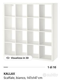 Vendo Kallax bianco 4x4 in buone condizioni per cambio arredi. Vendo a parte 5€ CAD i contenitori in foto. Ritiro Abbiategrasso città