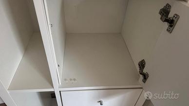 Kallax Ikea + 1 struttura interna con anta e 1 struttura interna con 2 cassetti. il mobile è in ottime condizioni. I cassetti e la porta invece sono un po' rovinati ma funzionano perfettamente.