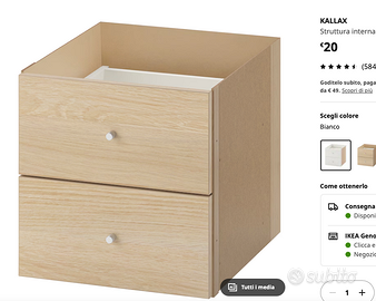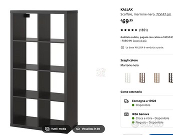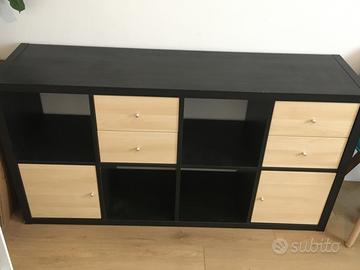 Kallax Ikea come in foto Colore marrone nero con cassetti e ante color legno chiaro Misure 147x77 Vendo anche senza accessori (cassetti e ante), solo scaffale 50€