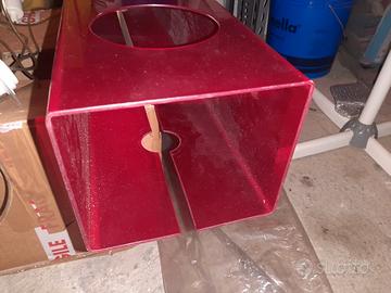 per cambio progetto mai utilizzato con cartellino 3 faretti, lampadario di grosse dimensioni, in plexiglass rosso trasparente curvato, ideale per locale, salotto studio