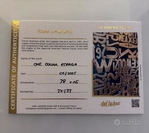 Opera originale di Karl Lagasse, one dollar espaga, edizione 27/33 (limitata a 33 pezzi), dimensioni 38cm x 16cm, venduto con autentica dell’artista.