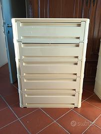 Mobili modulari in materiale plastico con quattro cassetti.
