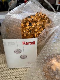 Bellissima lampada a sospensione BLOOM S2 di Kartell in tecnopolimero metallizzato finitura color rame, dimensioni 28cm x 19cm, designer Ferruccio Laviani. Come nuova, montata e smontata per cambio abitazione. Si vende corredata di scatola originale, struttura, fiori, libretto, certificato di collaudo, coppetta da soffitto e fiore di ricambio.