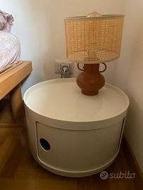 Contenitore di design con 2 cassetti Componibili, altezza totale 62 cm, attualmente utilizzato come due comodini separati, entrambi con ruote e ripiano originali. Si possono sovrappore per ritornare al design classico Kartell. Colore bianco panna.