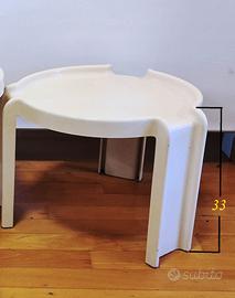 KARTELL PRODUSSE TRE TAVOLINI DI DIFFERENTI ALTEZZE, IMPILABILI: CM 44, CM 38, CM 33. QUESTO E' IL TAVOLINO PIU' BASSO, cm 33. OSSERVATE LA FOTO CON L'ALTEZZA. DIAMETRO cm 42,5 (più circa 3cm di sporgenza delle gambe). Design Giotto Stoppino 1970. La plastica mostra minimo ingiallimento sul piano e piccoli graffi, tutti molto modesti, molto difficili da fotografare, condizioni direi molto buone per l'età. Si può impilare sotto l’altro (più alto, cm 38) che ho in altro annuncio. Vedi la foto dei due impilati (SOLO quello da 33cm, più basso, in questo annuncio).
