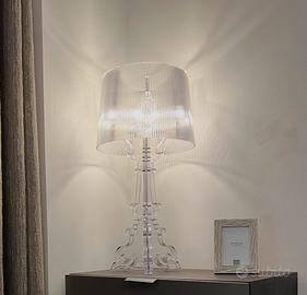 BOURGIE del designer Ferruccio Laviani unisce classico, immaginario e tradizione all'innovazione tecnologica. La base in stile barocco è composta da tre superfici decorate a croce, mentre il grande paralume con effetto plissettato crea un sorprendente gioco di luce dai mille riflessi.