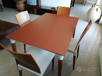 KARTELL - Elegante Tavolo completo di 4 Sedie - Miss Trip Philippe Starck ideale per ogni ambiente della casa - materiale Polipropilene colore avorio e legno massello di Ciliegio - dim. cm 70x140
