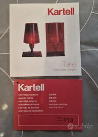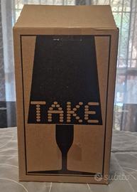 L'icona classica dell'abat-jour da comodino viene rivisitata dalla tecnologia di Kartell per trasformarsi in prodotto industriale in svariate tonalità cromatiche. La forma di Take nasce dalla congiunzione di due parti speculari: due lastre piatte, rettangolari che da bidimensionali al centro assumono la forma e il volume della "semi-lampada". La plissettatura interna del diffusore impreziosisce l'oggetto creando, quando accesa, un gioco di riflessi.