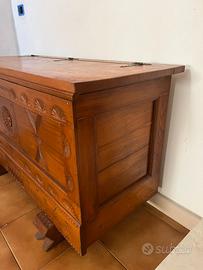 Bella cassapanca sarda intagliata a mano, legno di castagno, anni 50'.
