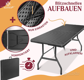 ๐๐๐๐๐๐ ๐๐๐๐ ๐๐๐๐๐๐๐๐: Dimensioni (LxPxA): 180 x 75 x 73 cm // Materiale del piano del tavolo: plastica resistente alle intemperie // Materiale della struttura: acciaio