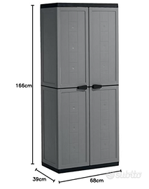 CARATTERISTICHE: Armadio bianco con inserti grigi dotato di 3 mezzi ripiani regolabili dalla portata di 10 Kg ciascuno e di ampio vano portascope