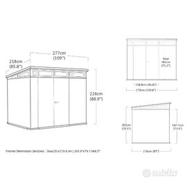 Dimensione esterne: Altezza 226cm - Profondità 218cm - Larghezza 277cm