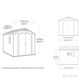 Dimensione esterne: Altezza 243cm - Profondità 255cm - Larghezza 248cm