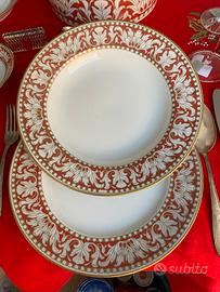 Le foto non rendono abbastanza la ricchezza e raffinatezza del decoro in oro zecchino su fascia rossa con elementi vegetali a volute incastonati tra due cornici ad elementi più geometrici.