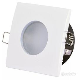 porta faretto impermeabile per cromoterapia disponibile quadrato e tondo ed in due colorazioni: acciaio e bianco. Forma: Quadrato Dimensioni 84 x 84 x 38mm Dimensioni montaggio foro 75 mm Forma: Rotondo Dimensioni: 84 x 38mm Dimensioni montaggio foro: 75 mm l faretto è munito di lampada LED RGBW IR potenza 8W + luce bianca ( è possibile utilizzare il faretto con luce bianca 4w per illuminare l’ambiente o utilizzando la luce rgb 4w per creare cromoterapia e vari effetti o giochi di luce). La lampada ha memoria interna e ricorda sempre l’ultimo colore impostato. Tecnologia SMD, con LED RGB+W (ha il colore bianco separato che fornisce il vero bianco di una lampadina LED classica), che consente di variare il colore della luce tramite il telecomando ad infrarossi in dotazione (ricevitore integrato). Grazie al telecomando è possibile accendere o spegnere il faretto, scegliere tra 16 colori statici (compresa la luce bianca), 16 livelli d'intensità luminosa (dimmerabile) e 4 giochi di luce.